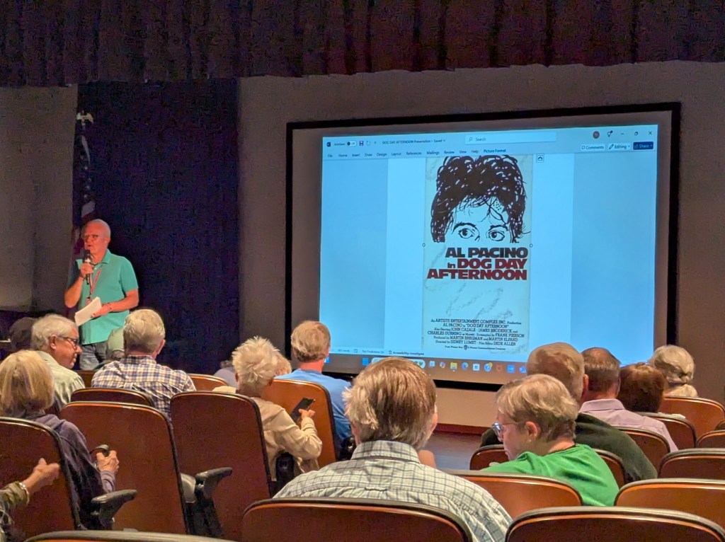 Tom delivers his opening remarks at a screening of Dog Day Afternoon at the Scottsdale Public Library on March 17, 2025. Photo by our friend and neighbor Diego.