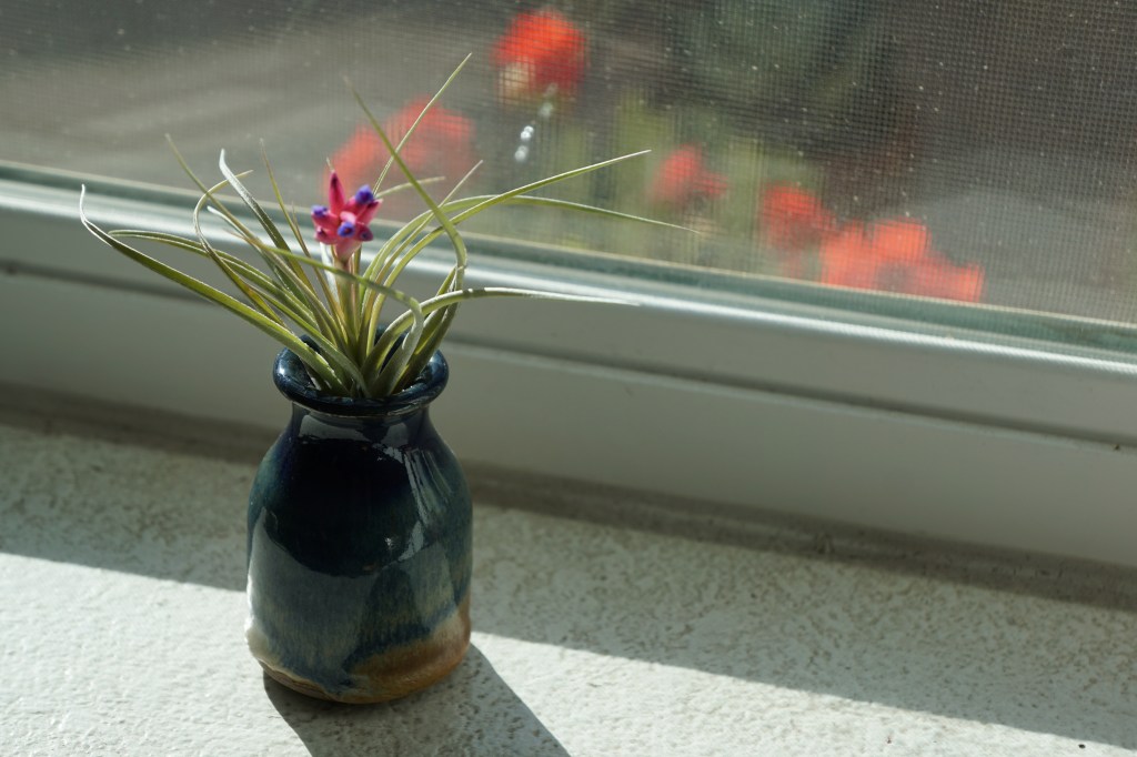 Just as there is peace and beauty blooming in two forms in my home in mid-winter; in an air plant inside, stationed on our Arizona windowsill; and in a red geranium outside, soaking in the morning sun on our southern-facing patio.