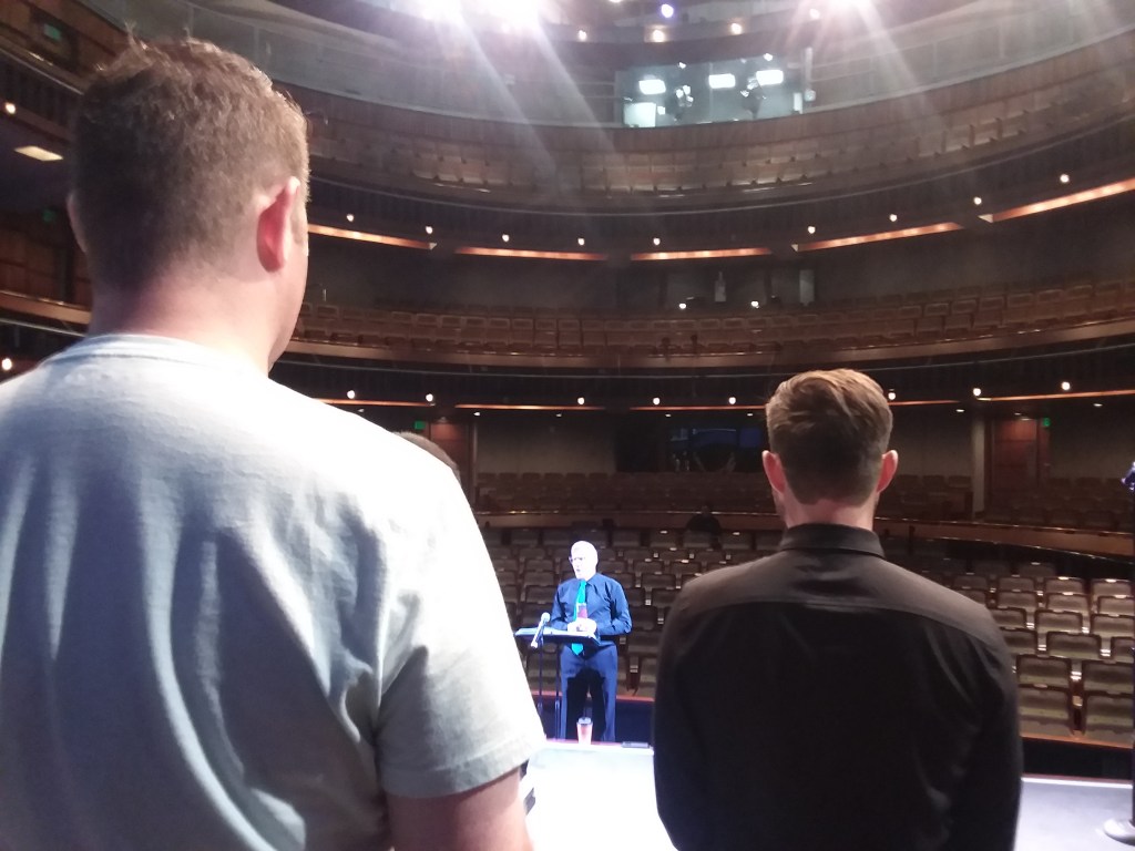 About ninety minutes before our Sunday concert, as we began to warm our voices, I captured this photo and sent it to him. This was my vantage point of the theatre from the top riser for most of the weekend.